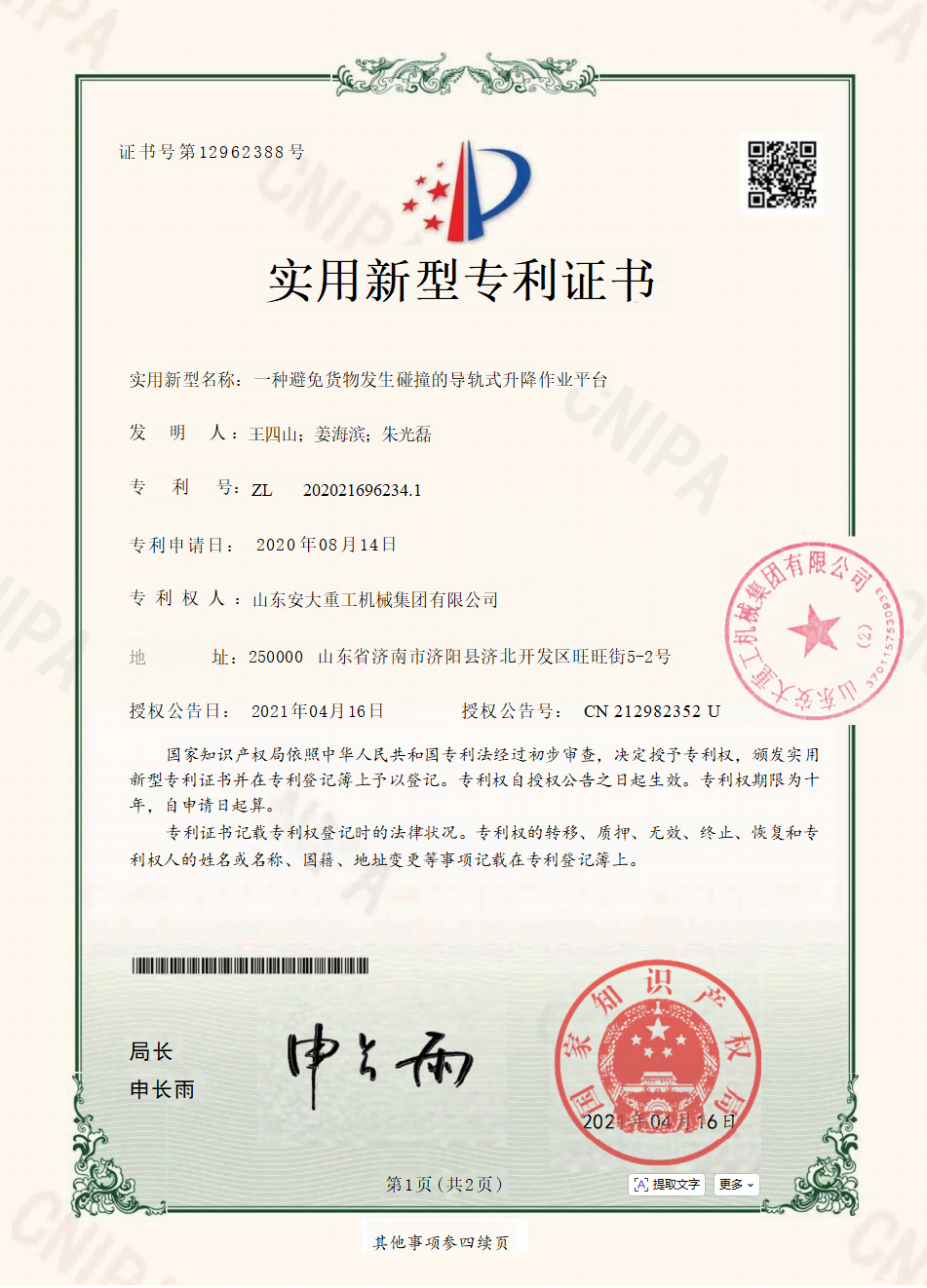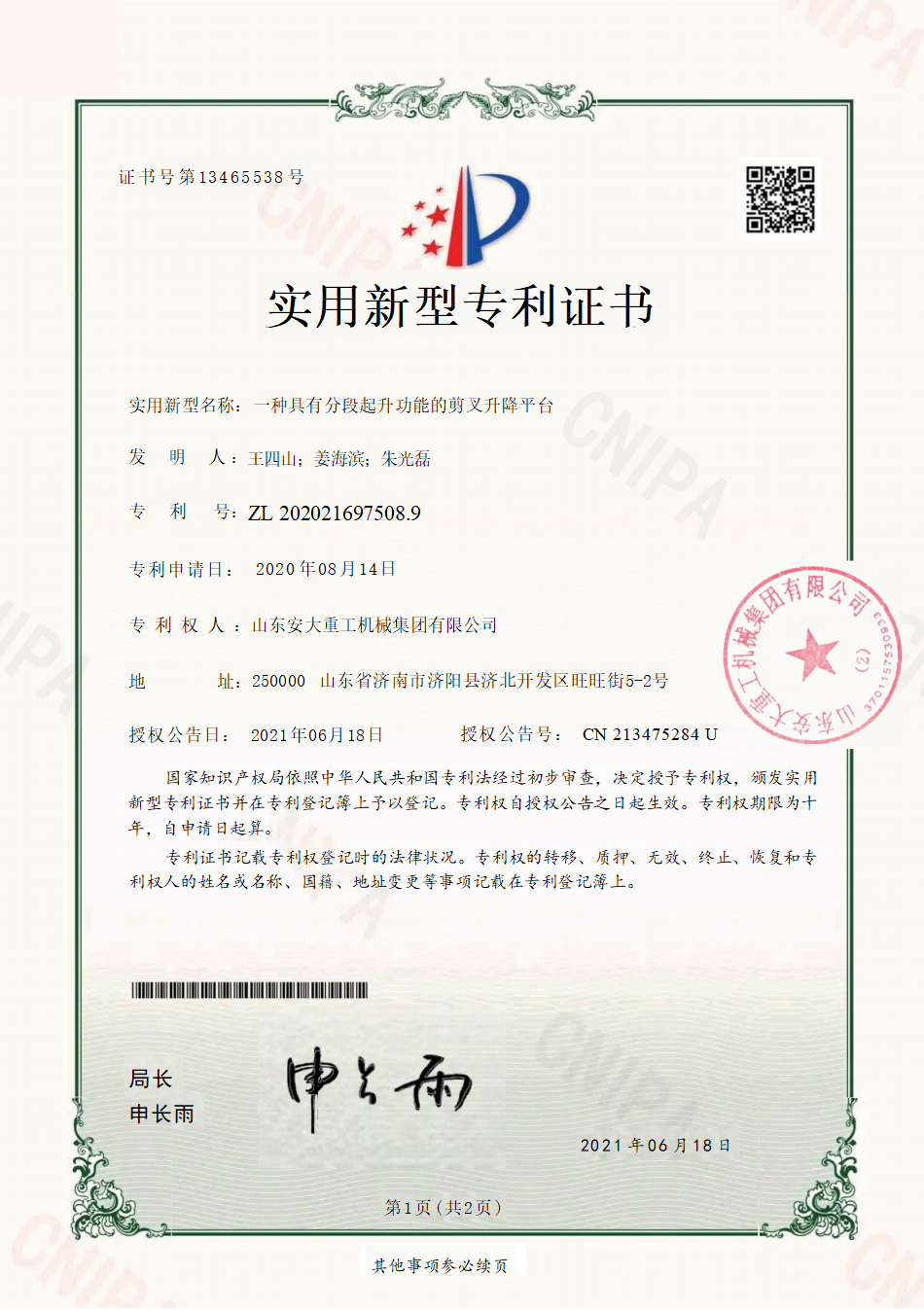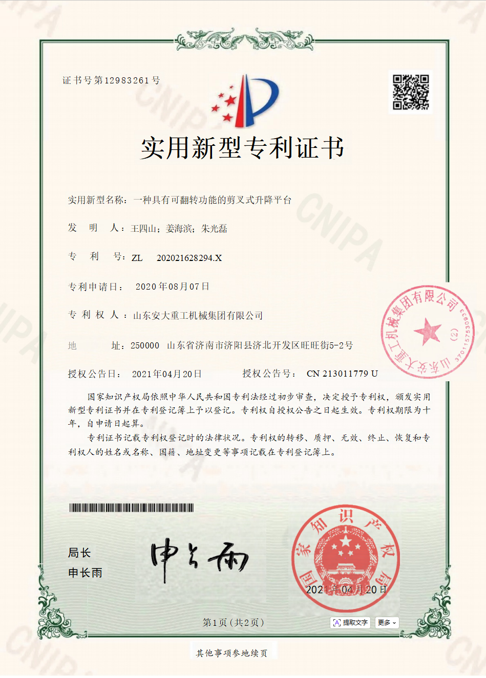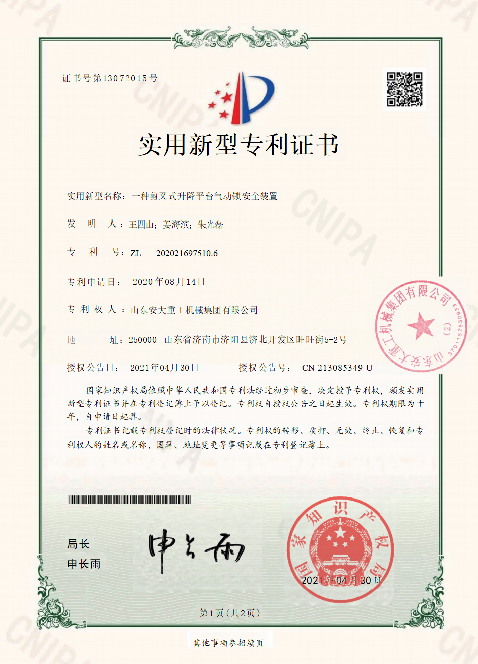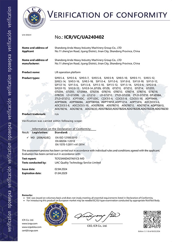 Shandong Anda Heavy Industry Machinery Group Co., Ltd. was established on October 19, 2016, with a registered capital of 57 million. The company is a research and development, production, sales, import and export as one of the machinery industry group, the group's main high-altitude work vehicles, intelligent parking Spaces, intelligent freight elevators and their derivative products, the business scope involves the entire industry chain upstream and downstream.