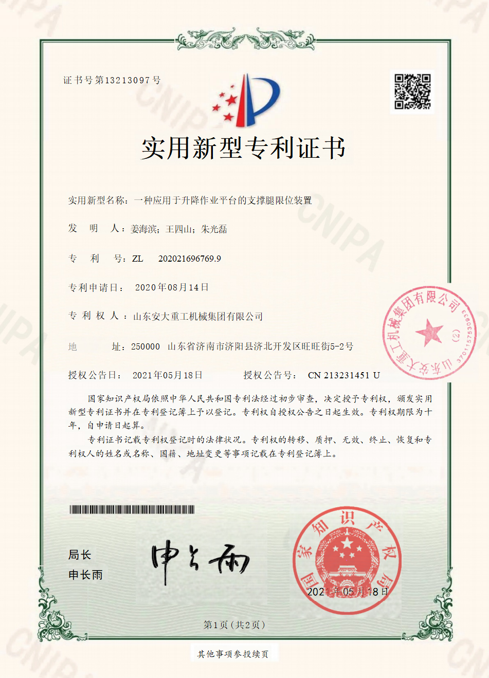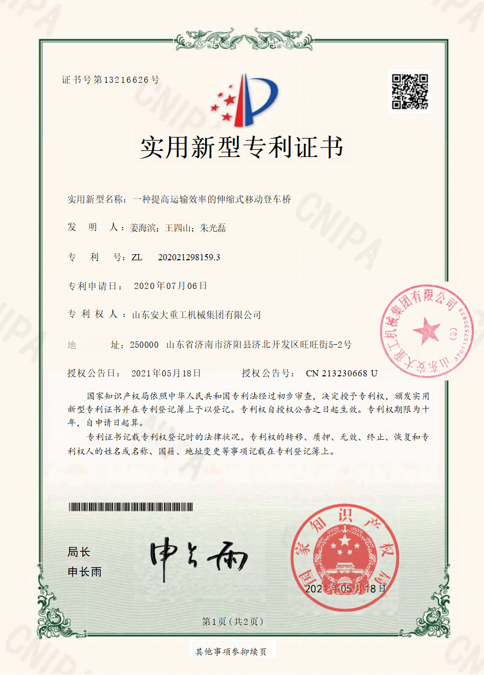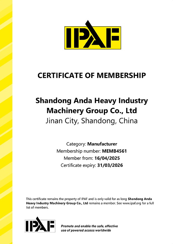 Shandong Anda Heavy Industry upholds strict quality standards and holds a full set of authoritative industry qualifications in line with national and international norms.